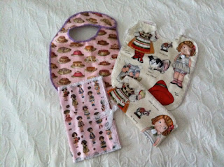 Isabel una mami de la Coruña, quería para la pequeña de sus Ladies unos baberos que fueran tan especiales como lo es ella, junto con un portapañales y una carterita para guardarlos.